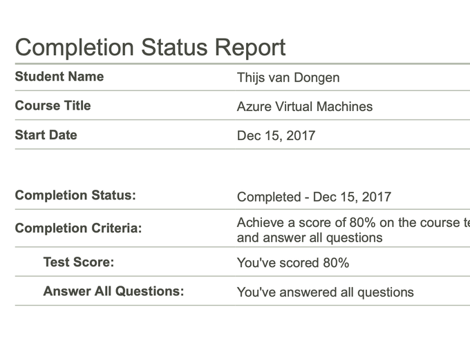 De opleiding is via FastLane en was een officiële Microsoft opleiding om een certificaat te halen (45423)